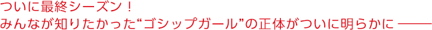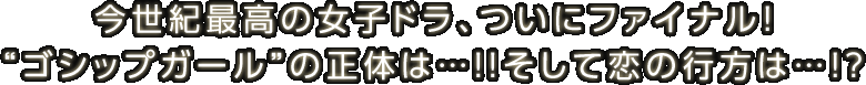 誰もが予想しなかったゴシップガールの正体は、最終回で明かされる。乞うご期待!!