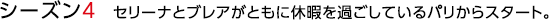 パリの魅力を満喫しながらセリーナは現地のイケメンたちとのデートを楽しみ、チャックの裏切りに傷心して気落ちしていたブレアは新たな出会いに心躍らせていた。一方、ニューヨークのネイトにミステリアスな美女が急接近。さらにダンは父親に内緒でジョージーナと息子のマイロと同居を開始していた。その頃プラハで強盗に撃たれたチャックは…。