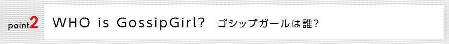 アッパー・イースト・サイドの“セレブ”たちに関する情報や事件をいち早くスクープ。どんな情報にも通じている“ゴシップガール”のその正体は誰にも知られていない。これまでに何度かその正体を暴こうとしたものの、いまだに謎のまま。