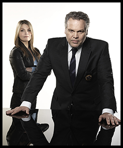 対する相棒エイムズ役のキャスリン・アーブは、ブロードウェイの舞台「The Speed of Darkness」でトニー賞候補になった実力派。しっかり者でゴーレンの推理をフォローもさりげなく行うエイムズを演じて、二人のコンビネーションは抜群の相性の良さも見どころだ。また「LAW & ORDER」シリーズには舞台俳優が多く出演しているが、本作でも上司ディーキンス警部役のジェイミー・シェリダン、カーバー検事補役のコートニー・B・ヴァンスもトニー賞候補になった実績を持つ。本家「LAW & ORDER」ほか他のシリーズでは刑事と検察の間には明確な境界線があるが、本作では捜査の途中でディーキンス、カーバーを交えて意見交換をすることも多く、とりわけ検察との対立の構図は少ない。そのため、時には意見が分かれても基本的にはチームワークを発揮するメインキャストのアンサンブルは重要な要素であり見応えがある。