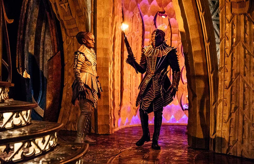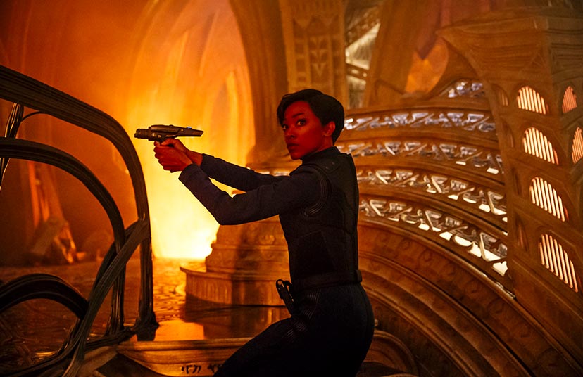 幼い頃に戦闘種族クリンゴン人に両親を殺されたマイケル・バーナムは、バルカン人の惑星連邦大使サレクの養女となり、地球人ながらもバルカンの教育を受けた。成長した彼女は、惑星連邦の宇宙艦隊USSシェンジョウの優秀な副長として活躍していたが、調査中に惑星連邦と100年の冷戦状態にあるクリンゴン帝国の戦士と偶然対峙し、誤って殺してしまう。その後、姿を現したクリンゴン艦に友好的な呼びかけを試みるも相手は一切応じない。ジョージャウ船長は交戦の恐れがあると非常警報を出しつつも、クリンゴンを刺激しないよう外交的手段を用いて穏便に進めようとする。しかし、サレクからの助言により、クリンゴンに先制攻撃をしない限りこちらに分がなく、クルーたちが全滅すると確信したマイケルは、船長の命令に背き独断で攻撃を開始。これが引き金となり、全面的な戦争が勃発。マイケルは反逆罪で中佐の階級をはく奪され終身刑となる。囚人となったマイケルは護送中にUSSディスカバリーのロルカ船長と接触し、能力を買われクルーとして戦時徴用されることになるが……。