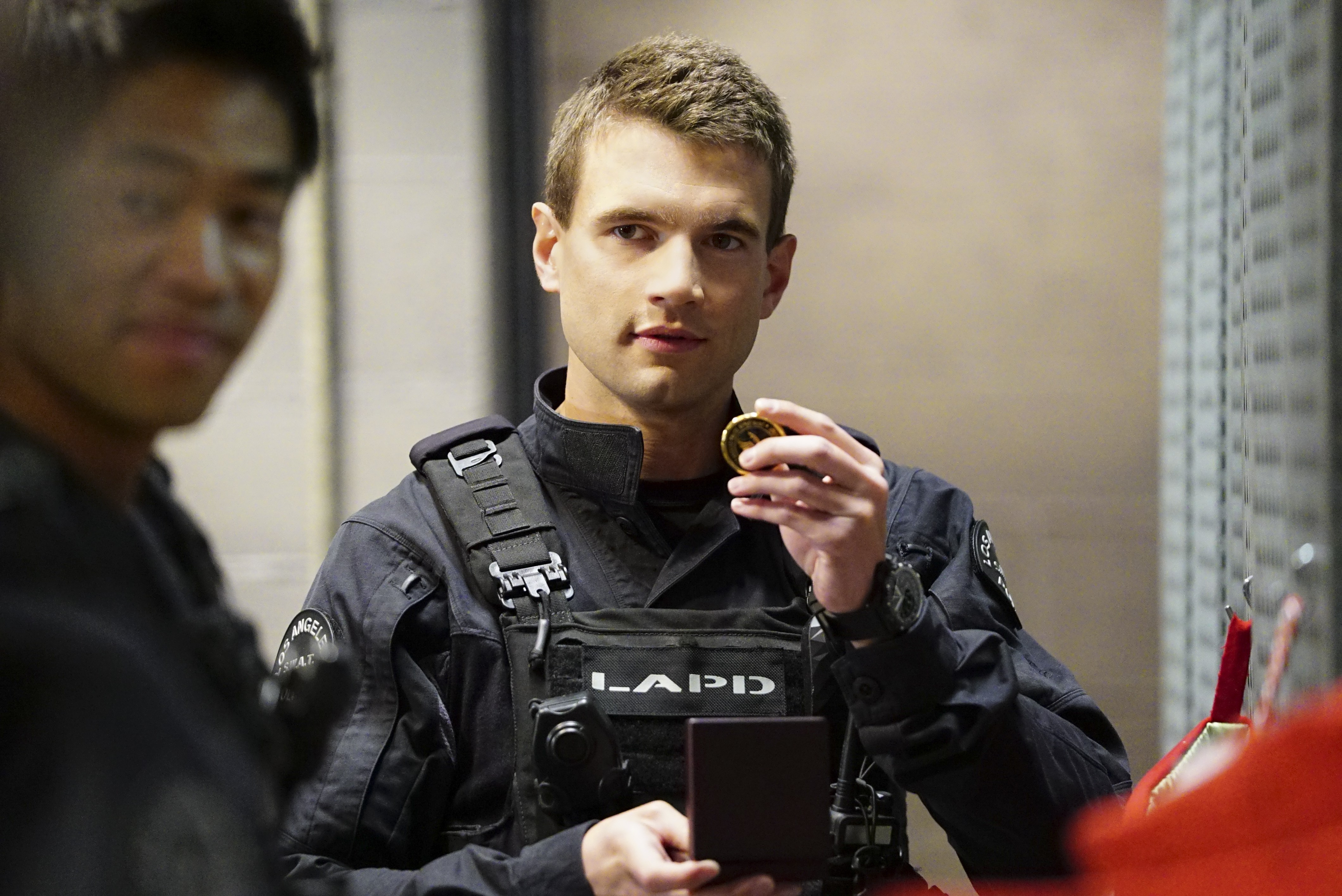 子供の頃、あんなふうになりたいと憧れた対象を、今こうして演じているんだから夢のようだよ。こうして彼らからトレーニングを受けられるのは、本当にすばらしいことだ。かなり現実に忠実に再現しているし、そうなるように注意を払っている。手の位置は正しいかとか、間合いの取り方は正しいかとか、出動要請があった時にどう行動するかとかね。3週間前まで、こうした知識は何もなかったが、みんなすごく楽しんでいるよ。僕たち俳優は、曲がりなりにも全力でSWATを演じたいと思っているし、そういった姿勢がドラマの出来に大きな影響を与えると思う。それに共演者たちとも話していたんだけど、みんなすぐに打ち解けて、冗談を言い合える仲になれたのもよかった。“みんなで心から支え合おう”とシェマーがすごくいいことを言っていた。僕は2016年にグラナイト・マウンテン・ホットショットの活躍を描いた映画に出たんだけど、あの時と似たものを感じたね。