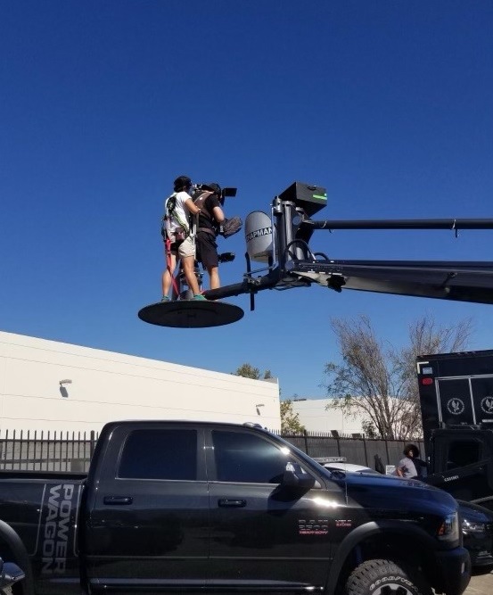 グリップの部署には現場を統括する特機部チーフ(キー・グリップ)がいて、また第一助手(ベストボーイ・グリップ)はスタッフの配置や制作会議などサポート業務を担当します。彼らは現場が撮影を行なっている間に次の数話分の撮影の準備もします。「S.W.A.T.」は規模の大きい番組なので、現場準備の先発隊がいて、私たちが到着してすぐに撮影が始められるようにセットの準備をしておいてくれています。「S.W.A.T.」はA、B、Cの3台のカメラで撮影をするので、3人のドリーグリップがいて、私はBカメ担当のBドリーグリップです。そして撮影中は私たちを含めて10人ぐらいのグリップが現場にいます。