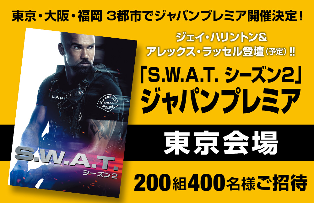 ジャパンプレミア【東京会場】では「S.W.A.T.」チームのデヴィッド・“ディーコン”・ケイ役のジェイ・ハリントンとジム・ストリート役のアレックス・ラッセルの二人が来日して登壇(予定)します!応募者の中から抽選で200組400名をご招待いたします。ふるってご応募ください!