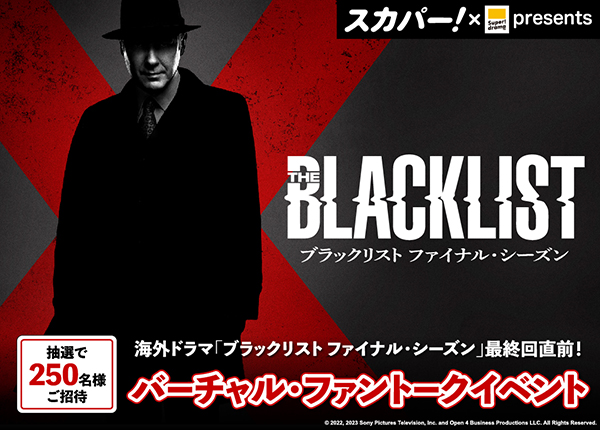 シーズン1より独占日本初放送を続けてきたスーパー!ドラマTVだからこそできるこの特別なイベントに、抽選でスカパー!ご契約中の250名様をご招待いたします。「ブラックリスト」ファンは必見です!