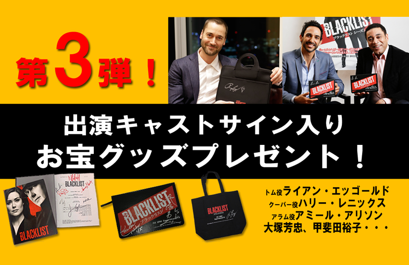 「ブラックリスト シーズン6」4月30日(火)独占日本初放送開始記念! 総額50万円分!1万円QUOカードとオリジナルグッズが当たる "「ブラックリスト」をゼッタイ観よう!キャンペーン"を実施いたします!