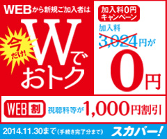さらにスカパー!ではこの期間加入料0円キャンペーンを実施!