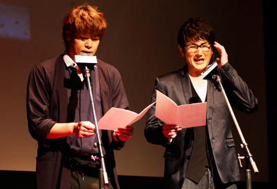 終盤には宮野さん、土田さんによる公開生アフレコも開催!直前に会場でご覧いただいた第1話のアクションシーンを再現していただき、めったに見ることができないアフレコの緊張感に会場に集まったお客さんも大歓声を送っていました。