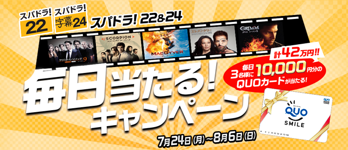 大ヒット番組が勢ぞろいする夜10時(22時)と深夜0時(24時)の番組終了後に応募専用番号を発表する『スパドラ22&24 毎日当たるキャンペーン』が8月6日(日)で終了いたします。