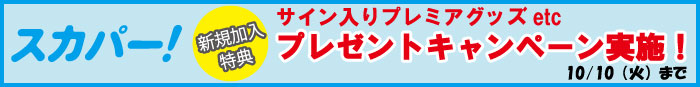 ★スカパー!新規単チャンネルご契約の方を対象にレアグッズが当たる新規加入キャンペーン実施中!>>