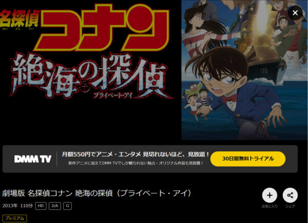 DMMTVで映画「名探偵コナン 絶海の探偵」の動画を全話無料視聴