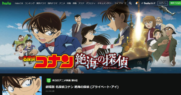 Huluで映画「名探偵コナン 絶海の探偵」をフルで無料視聴