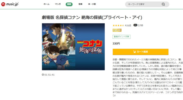 music.jpで映画「名探偵コナン 絶海の探偵」をフルで無料視聴