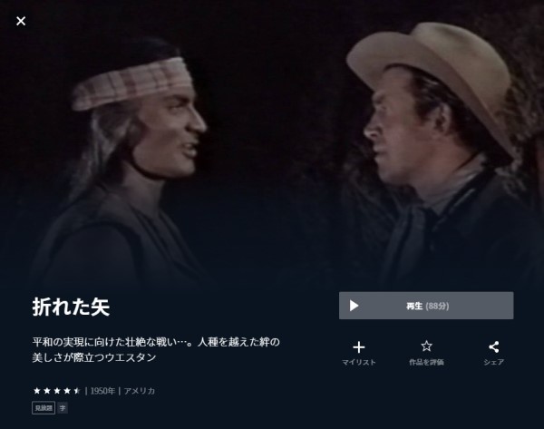 U-NEXTで映画「折れた矢」の動画を無料トライアルでフル視聴