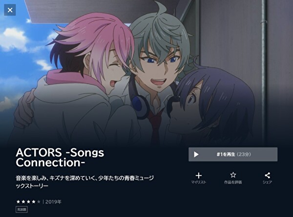 U-NEXTでアニメ「ACTORS -Songs Connection-」の動画を無料トライアルで全話視聴