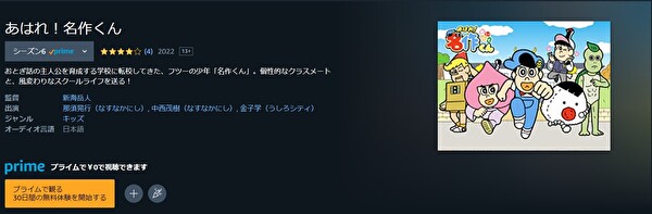 人気の動画配信サイトAmazonプライムでも、アニメ「あはれ!名作くん(6期)」を視聴できるか調査しました。