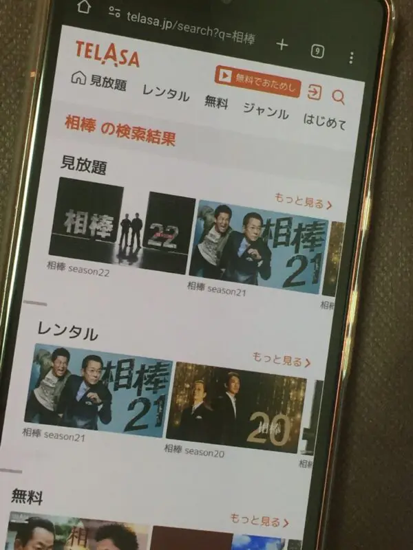 ドラマ「相棒」は、TELASAで全話配信しており無料視聴することができます。