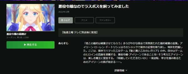 アニメ「悪役令嬢なのでラスボスを飼ってみました」が見逃し配信された場合は視聴することはできますが、お試し期間がないので登録した時点で月額料金がかかってしまいます。