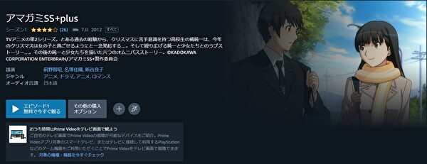 Amazonプライムはアニメ「アマガミSS+plus(2期)」は無料で視聴できませんが、関連動画やシリーズ作品には見放題で配信されているものもあります。