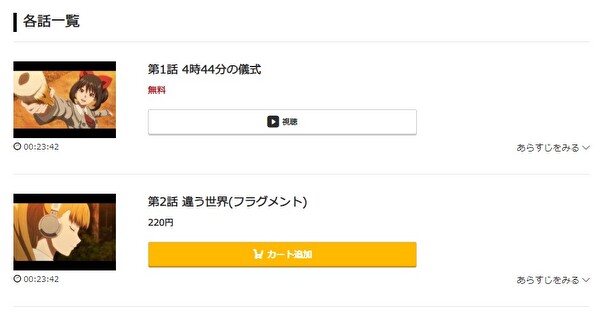 「あかねさす少女」のアニメのレンタル料金は1話220円です。