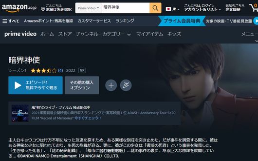 Amazonプライムでアニメ「暗界神使」の動画を全話無料視聴
