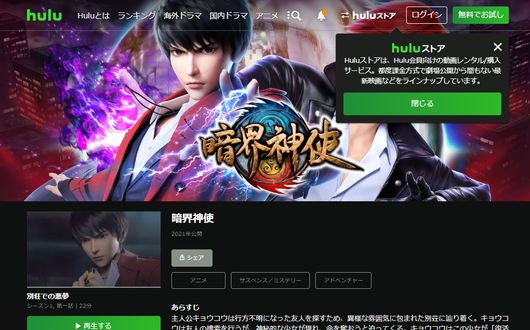 Huluでアニメ「暗界神使」の動画を全話視聴