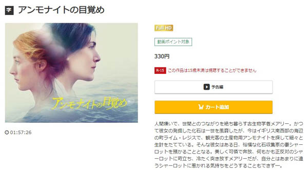 music.jpは、初回登録で1,600Ptが貰えるので「アンモナイトの目覚め」の映画を無料で見ることができます。