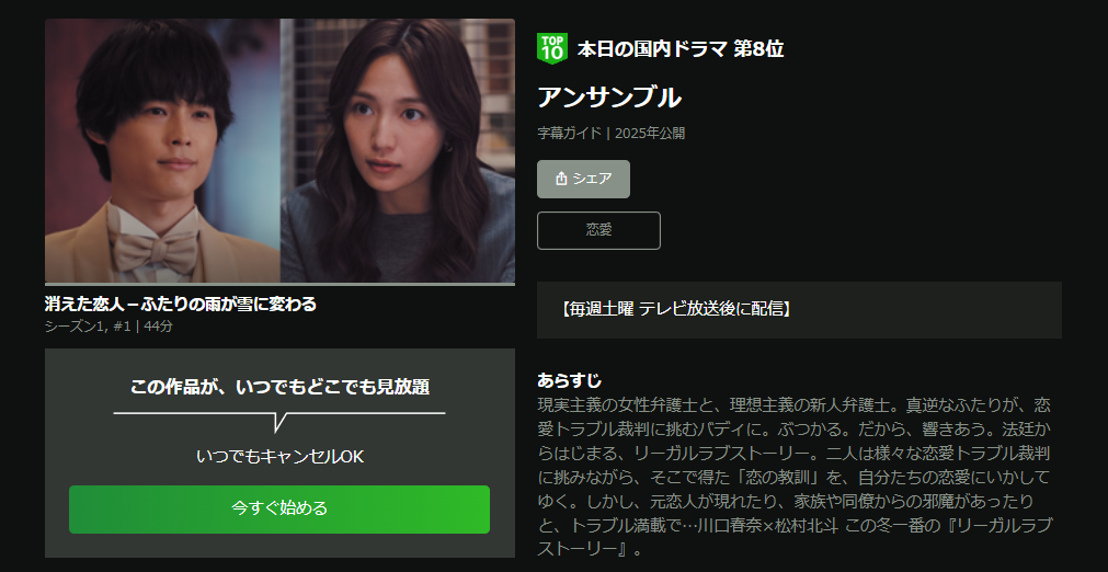 • 「アンサンブル」が全話見放題で視聴可能