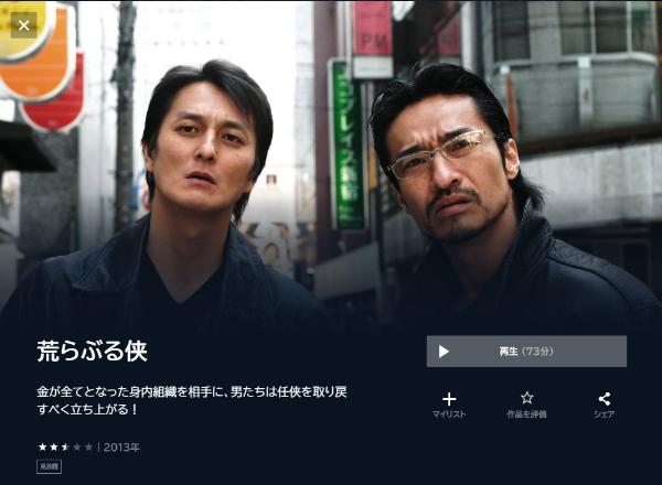 映画「荒らぶる侠」は330円でレンタル配信してるので、フルで視聴できます。