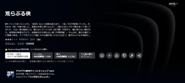 映画「荒らぶる侠」はAmazonプライムビデオでもフルで視聴することができます。