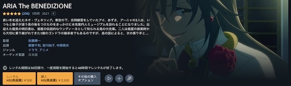 また、「ARIA The BENEDIZIONE」の映画の関連作品も見放題でフル視聴できます。