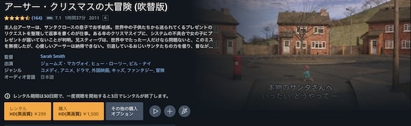 映画「アーサー・クリスマスの大冒険」は299円でレンタル配信してるので、フルで視聴できます。