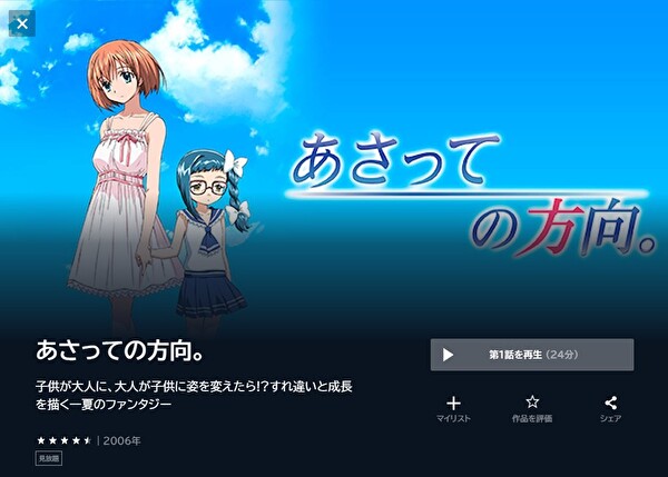 U-NEXTでアニメ「あさっての方向。」の動画を無料トライアルで全話視聴