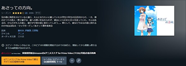 人気の動画配信サイトAmazonプライムでも、アニメ「あさっての方向。」を視聴できるか調査しました。