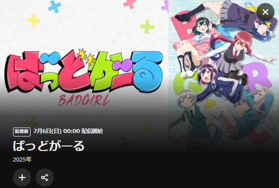 U-NEXTなら、アニメ「ばっどがーる」の動画を1話から最新話まで全話視聴できます。