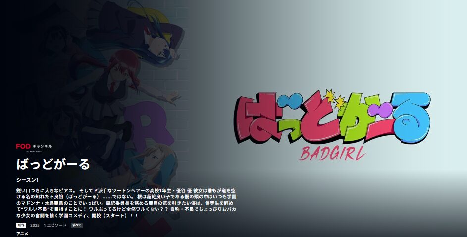 Amazonプライムでアニメ「ばっどがーる」の動画を全話無料視聴