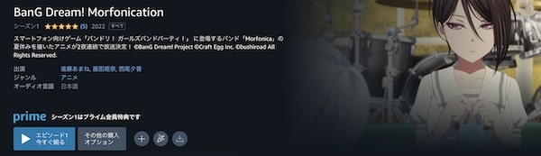 人気の動画配信サイトAmazonプライムでも、アニメ「BanG Dream! Morfonication」を視聴できるか調査しました。