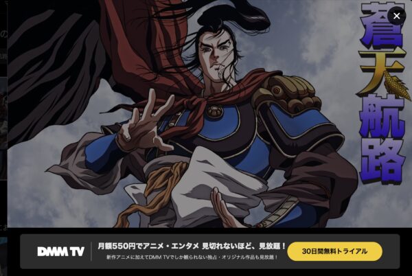 初回お試し期間が30日間あり、アニメ「蒼天航路」の配信もありフルで見ることができます。