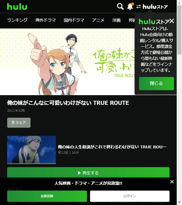 Huluでアニメ「俺の妹がこんなに可愛いわけがない(1期) TRUEROUTE(WEB配信)」の動画を全話視聴