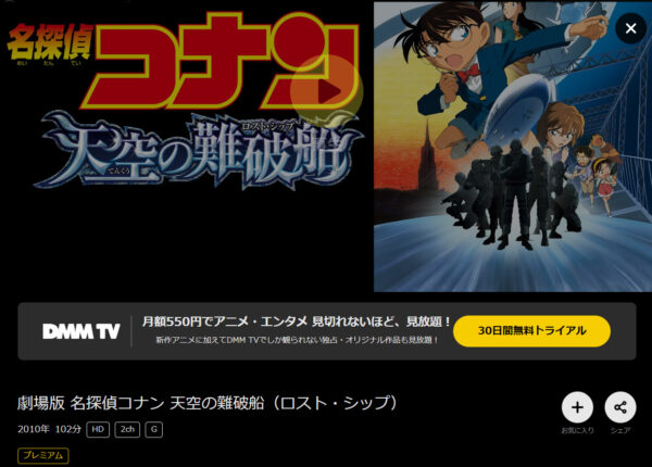 DMMTVで映画「名探偵コナン 天空の難破船」の動画を全話無料視聴