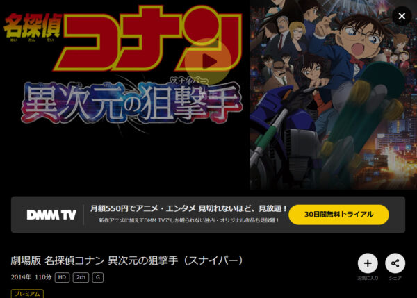 DMMTVで映画「名探偵コナン 異次元の狙撃手」の動画を無料視聴