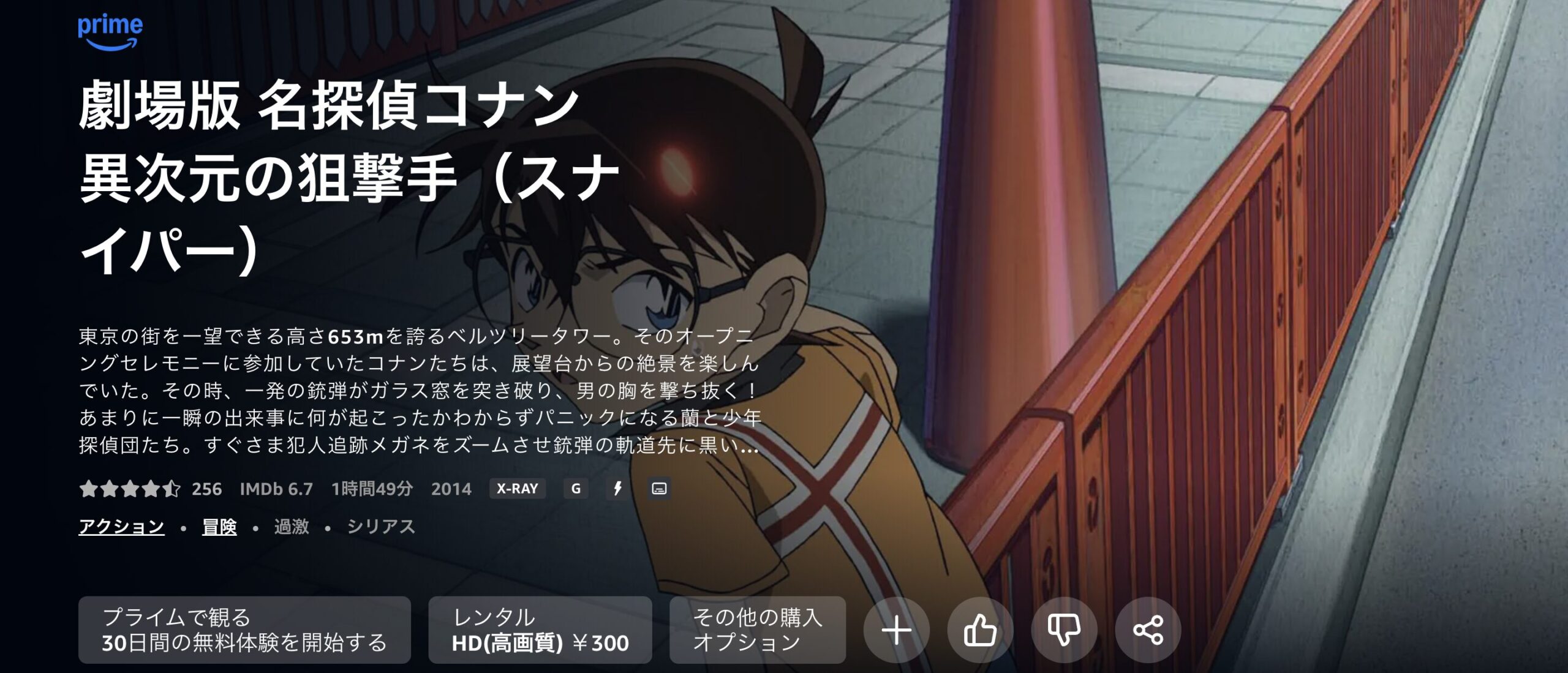 Amazonプライムビデオで映画「名探偵コナン 異次元の狙撃手」の動画を無料視聴
