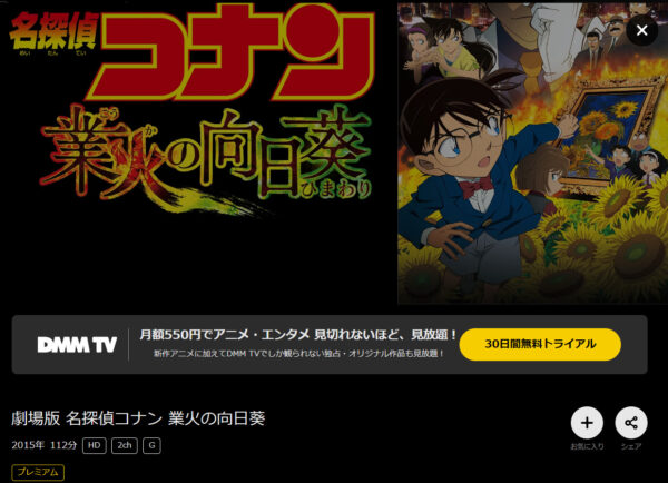 DMMTVで映画「名探偵コナン 業火の向日葵」の動画を全話無料視聴
