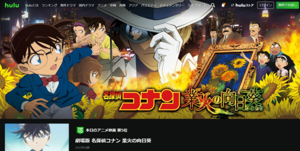 Huluで映画「名探偵コナン 業火の向日葵」をフルで無料視聴