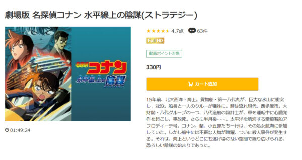 映画「名探偵コナン 水平線上の陰謀」の動画は330円でレンタル配信してるので、フルで無料視聴できます。