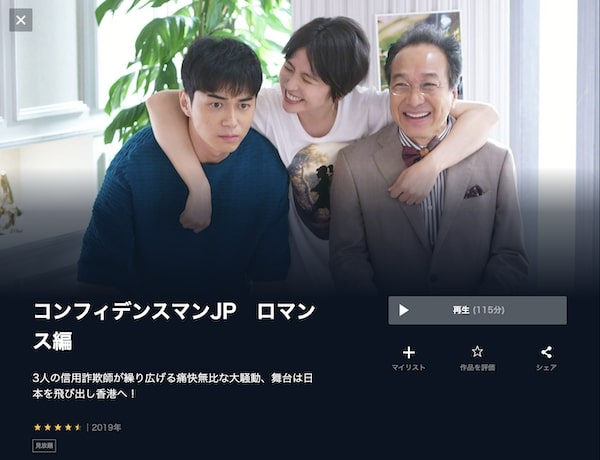 そして、映画「コンフィデンスマンJP ロマンス編」のシリーズ作品の映画もフルで無料視聴が可能です。