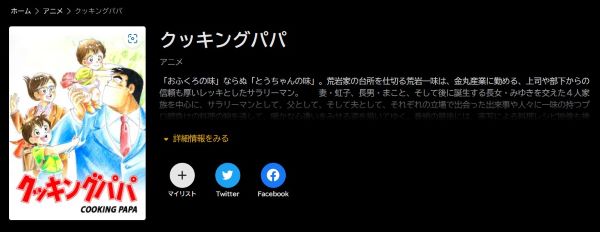 ただ、アニメ「クッキングパパ」の動画は視聴できないので、クッキングパパを見たい場合はU-NEXTをお試しください。