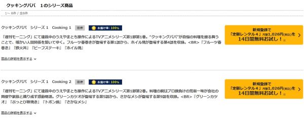 動画配信サービスとは少し違い、DVDレンタルサービスになりお試し期間で、「クッキングパパ」の動画を全話視聴することができます。