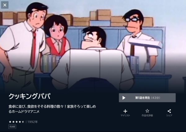 U-NEXTでアニメ「クッキングパパ」の動画を無料トライアルで全話視聴