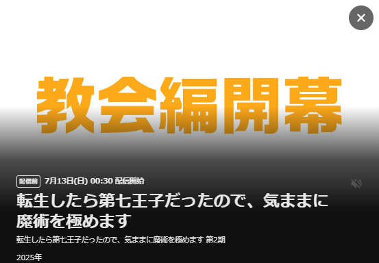 DMMTVで「転生したら第七王子だったので、気ままに魔術を極めます 第2期」は配信中となっています!